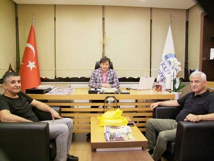 Antalya Oto Tamirciler Odası Başkanı Mehmet Bucak ve Antalya Oto Tamirciler Odası Yönetim Kurulu Üyesi Ramazan Ergin Korkuteli Belediye Başkanı Hasan Ali İrban’ı ziyaret etti