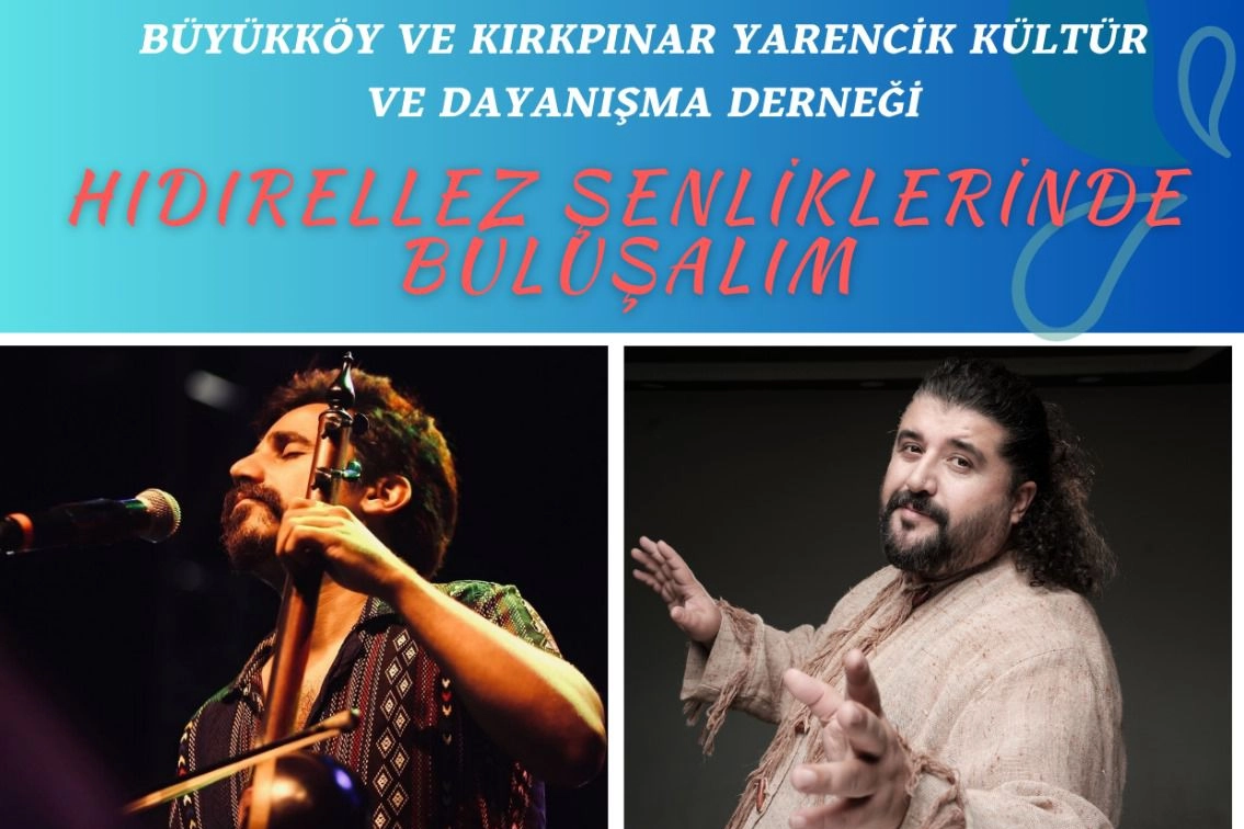 Her yıl Büyükköy ve Kırkpınar Yarencik Kültür ve Dayanışma Derneği tarafından düzenlenen Hıdırellez Şenliği yarın 8’inci kez düzenlenecek. Büyükköy Mahallesi Şenlik Alanındaki etkinlik saat: 11.30’da açılış konuşmaları ile başlayacak. Yöresel Sanatçılar, Yöresel Oyunlar ve Semah Gösterilerinin ardından Saat:15.30’da yemek ikramı yapılacak. Akşam ise Uğur Önür ve Mustafa Özarslan konser verecek. Büyükköy ve Kırkpınar Yarencik Kültür ve Dayanışma Derneği Başkanı Murat Kolağasıoğlu tüm vatandaşları şenliğe davet etti.