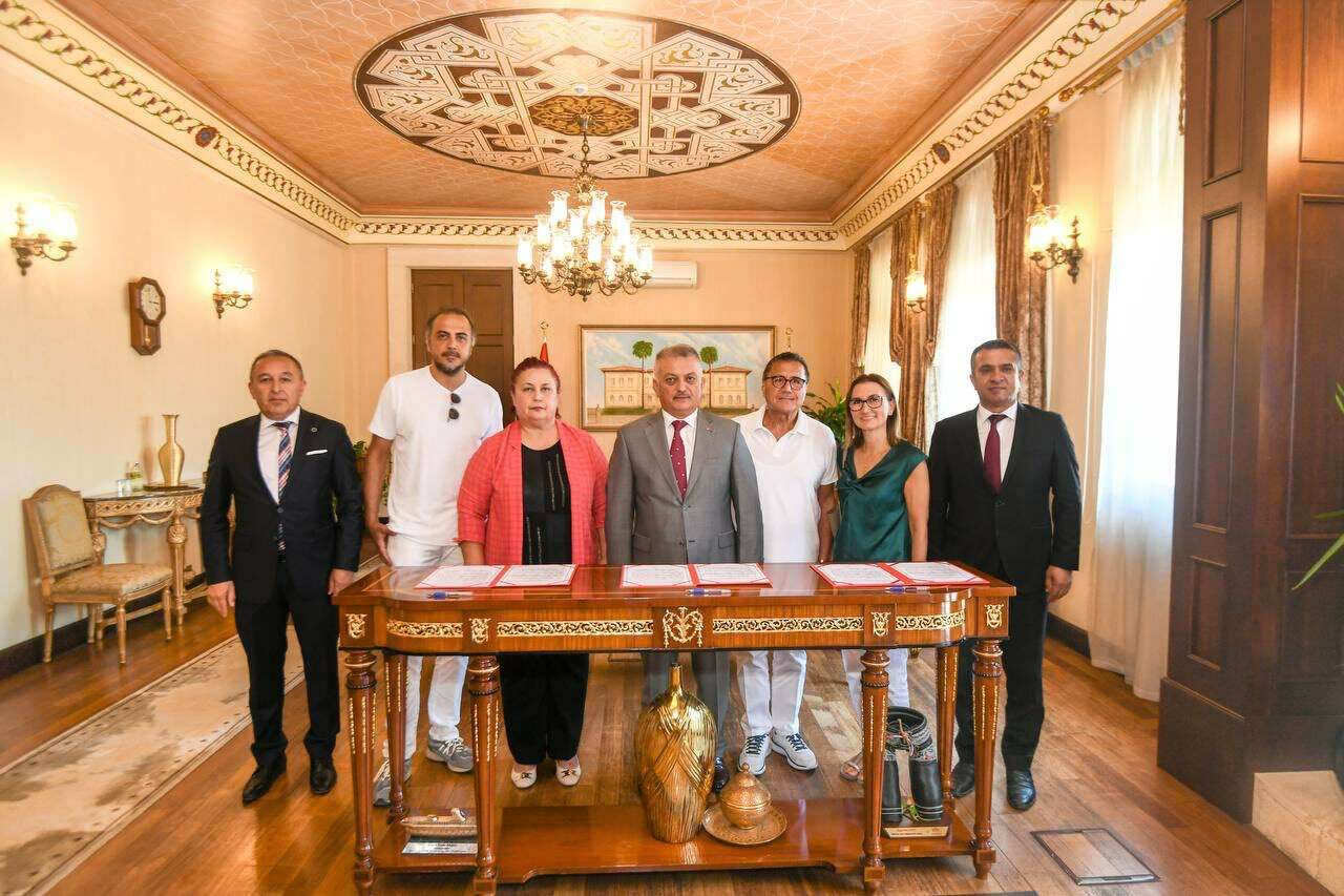 Vali Ersin Yazıcı, hayırseverler Etem Ruhi Kavukcu ve Emin Öztürk ile Korkuteli Hacı Ethem-Şerife Kavukcu Anadolu Lisesi’ne yaptırılacak olan 16 derslikli Selen-Ethem Ruhi Kavukcu Ek Derslikleri için protokol imzaladı.