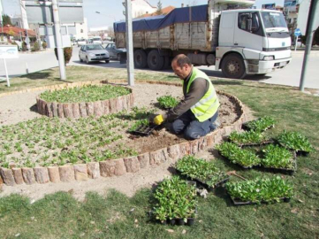 çiçekler dikilmeye devam ediliyor. Korkuteli Belediyesi Park ve Bahçeler