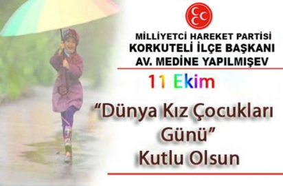 Milliyetçi Hareket Partisi Korkuteli İlçe Başkanı Medine Yapılmışev 11 Ekim Dünya Kız Çocukları Günü münasebeti ile bir açıklama yayınladı.
