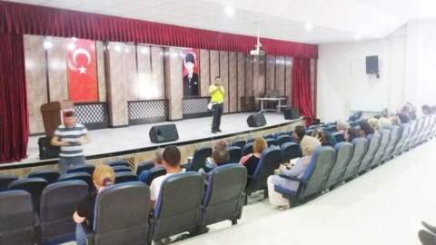 İlçe Emniyet Müdürlüğü Trafik Denetleme Büro Amirliğinde görevli ekiplertarafından verildi. Öğretmenlere yönelik